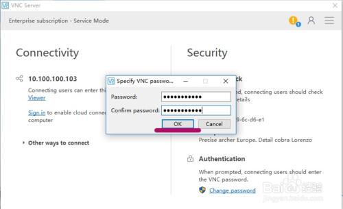 13、我們可以點擊 Authentication 里的 Change password 來設(shè)置初始訪問密碼,這里的密碼即為客戶端訪問該服務(wù)器時的密碼,設(shè)置完要重輸一遍來確認,之后點擊 OK 即可。一般來說,設(shè)置好密碼之后就可以通過遠程客戶機訪問了