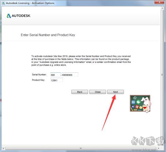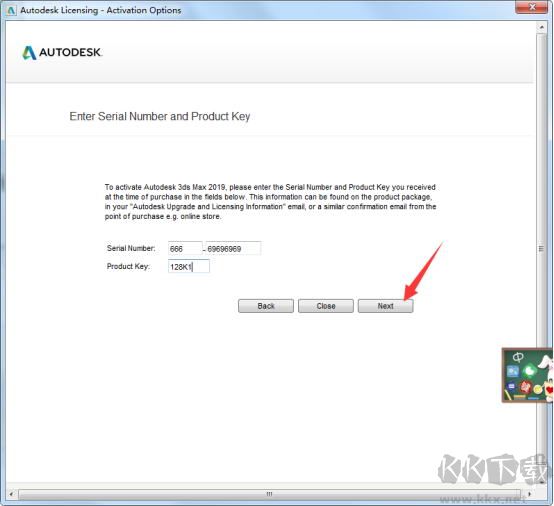 18、最后把算出來的激活碼,復(fù)制到3DS MAX 2019中,點(diǎn)擊next下一步。