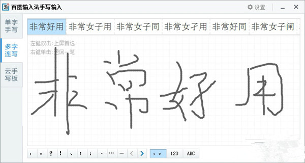 百度手寫(xiě)輸入法是一款可以使用鼠標(biāo)手寫(xiě)輸入的輸入法軟件,如果使用觸屏的朋友還可以使用觸屏輸入,非常好用,特別適合一些不會(huì)使用拼音五筆的朋友,還適用于鍵盤(pán)壞掉時(shí)可以臨時(shí)使有它來(lái)書(shū)寫(xiě)。