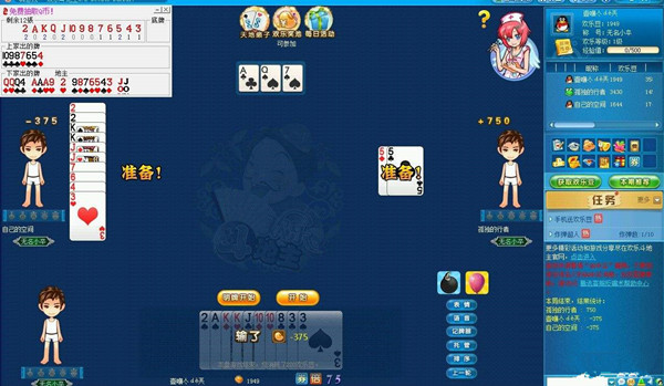 4、根據(jù)游戲不同,提示除記牌之外的重要信息,如:[升級]游戲提示每家缺什么花色等