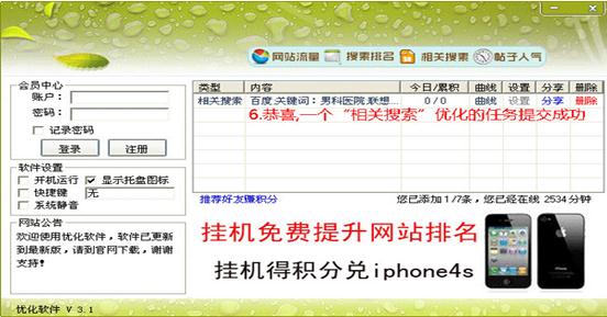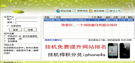 1、網(wǎng)站刷流量 先添加一個網(wǎng)站,或是網(wǎng)址,然后點擊提交即可。 如輸入:KK下載站 http://www.sdyshb.cn 提交。 點擊一下設(shè)置。 勾選是否開啟子頁瀏覽,也就是可以通過連接進刷內(nèi)頁。 二、刷搜索排名 點擊蛋搜索排名,在彈出的對話框中輸入網(wǎng)址以及關(guān)鍵詞后點擊提交即可刷搜索排名 3、刷相關(guān)搜索 點擊刷相關(guān)搜索后在彈出的對話框中選擇百度、搜狗或者好搜等搜索引擎后在填入聯(lián)想詞點擊提交即可 龍卷風(fēng)優(yōu)化軟件有用嗎? 龍卷風(fēng)優(yōu)化軟件是款網(wǎng)站seo優(yōu)化刷流量的工具,主要用于淘寶,個人博客,QQ空間等刷人氣都不錯,小編不建議用來網(wǎng)站進行刷流量,畢竟網(wǎng)站流量還是自己一步一個腳印的付出的,如果刷廣告的話也會判定為作弊,大家謹(jǐn)慎使用。