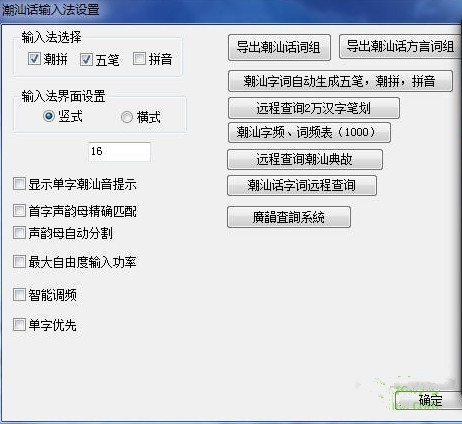 潮語中很多字結構復雜,筆畫多,通常的輸入法很難看到字結構。同時,為了方便老年人使用,結合潮語區(qū)的現(xiàn)實,在輸入法上,開始了輸入窗口的實時擴大縮小功能。輸入過程中隨時按鍵盤的上下鍵,可以擴大和縮小。