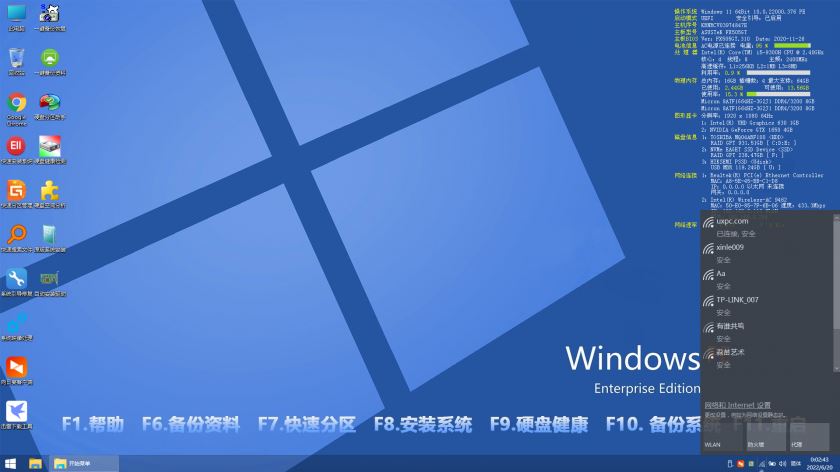 · 加入了常用軟件的快捷鍵,讓裝機(jī)更加便捷快速,節(jié)約寶貴的時(shí)間,桌面壁紙有具體說明,如果需要修改快捷鍵,可以修改PEtools\Setting.ini文件中快捷鍵相關(guān)的字段。當(dāng)然也可以在這文件添加一起自己想要的命令,讓PE更適合自己!