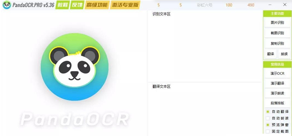 1、PandaOCR是網(wǎng)友miao_miao在GitHub上建立的一個(gè)項(xiàng)目。它主打OCR文字識(shí)別,并附帶有自動(dòng)翻譯、語(yǔ)音朗讀和彈窗提醒功能。PandaOCR最大的特點(diǎn),就是完全免費(fèi)無(wú)廣告,不會(huì)有任何功能限制。