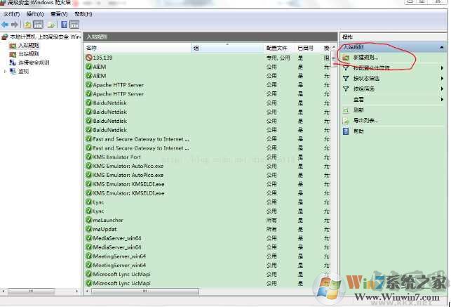 2、在“高級安全 windows 防火墻”頁面 左側(cè) 找到 “入站規(guī)則”右鍵點(diǎn)擊“新建規(guī)則”。