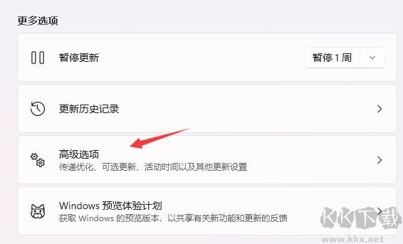 3、在Windows更新中,點擊右側(cè)更多選項下方的“高級選項”