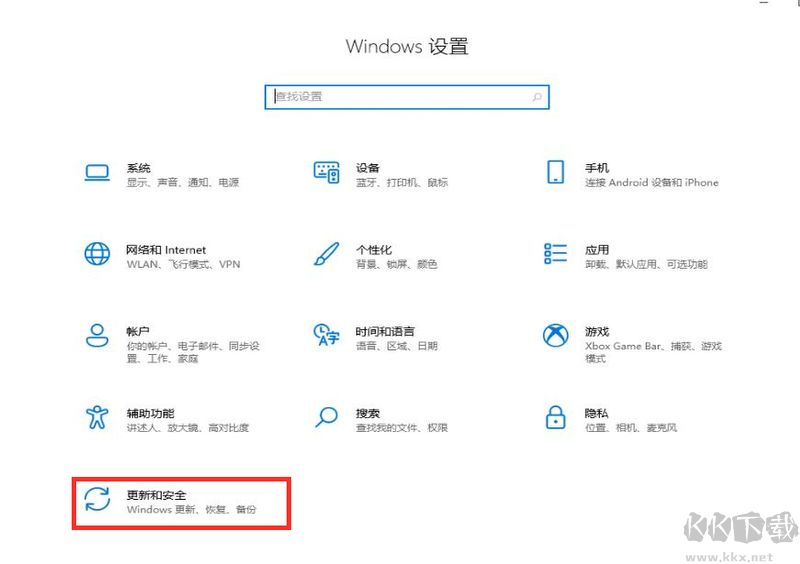 2、在Windows設(shè)置界面選擇更新和安全選項(xiàng);