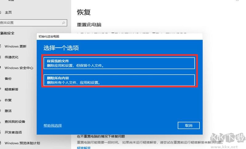 4、這里需要大家選擇是否保留文件或是刪除所有文件,這點(diǎn)和Win10一樣。