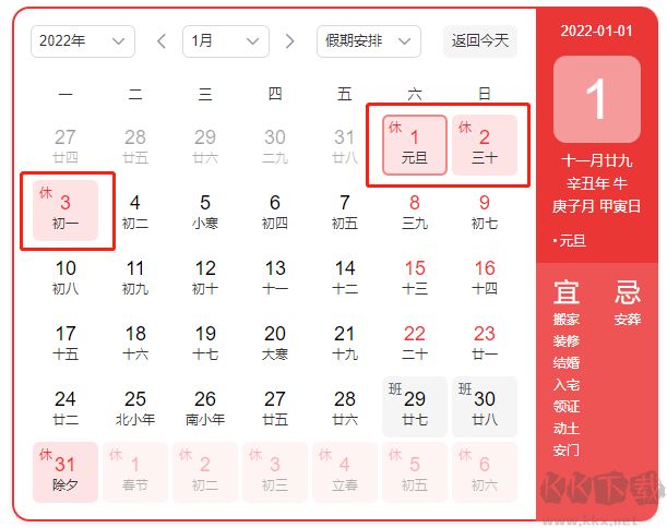 2022年元旦放假時間安排:2021年1月1日(周六)-2022年1月3日(周一),共放假3天。