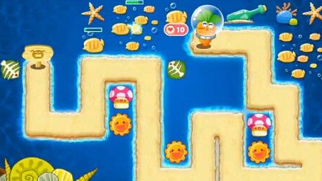 3、這關(guān)的難度并不是很大,我們最后需要多配合冰花減速,魚刺和炮塔來輸出就好了,很容易就可以過關(guān)。
