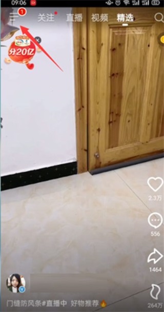 1、打開抖音火山版,點(diǎn)擊左上角的三條橫桿。