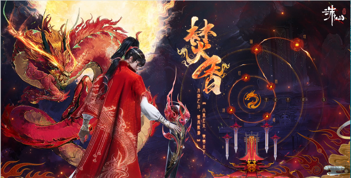 奇法“八兇玄火法陣”能喚出上古神獸八荒火龍,其火焰洶涌,可以焚盡一切,焚香谷上下皆視八荒火龍為神明,并將其作為門(mén)派神獸供奉。