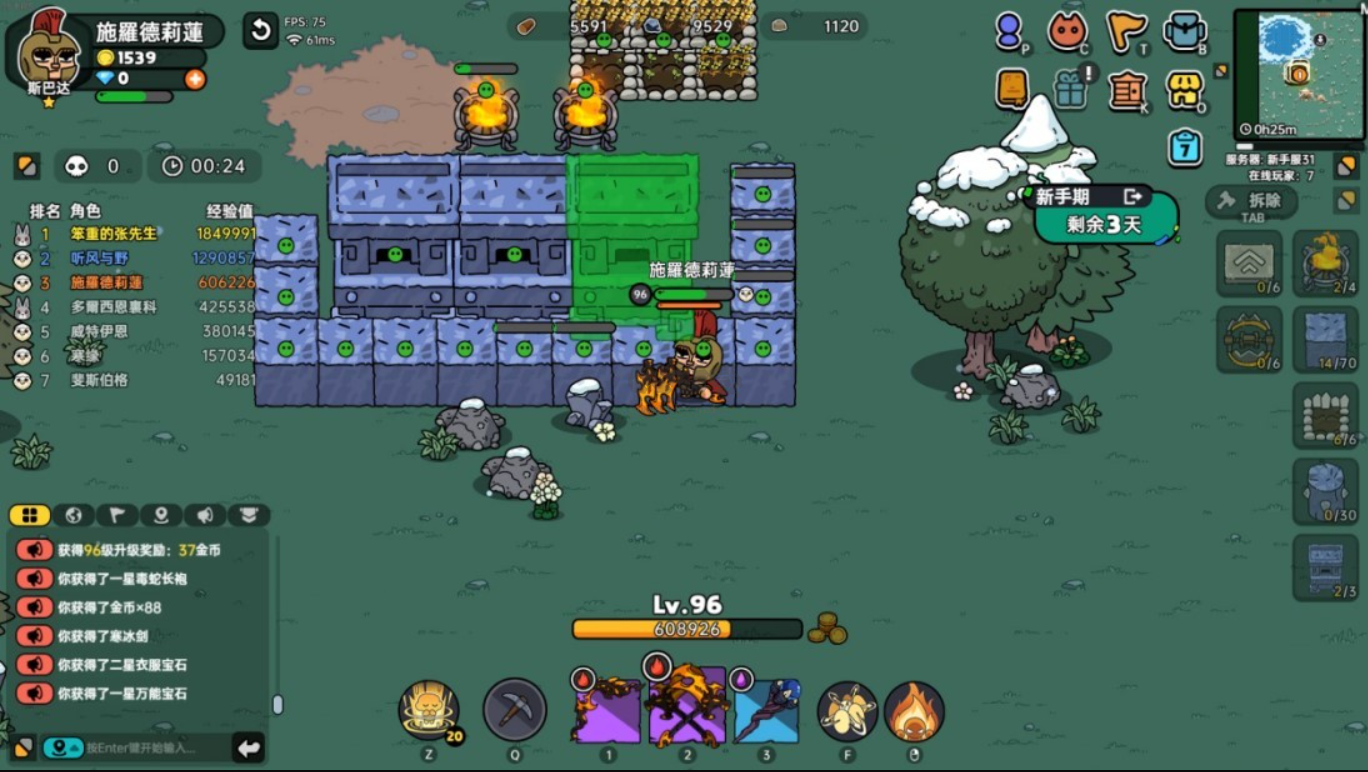拋開這些RPG和生存建造玩法,《沙盒與副本》更底層的規(guī)則是一款IO游戲,就像曾經(jīng)風靡一時的《球球大作戰(zhàn)》那樣,游戲中的所有玩家默認相互敵對,你需要和其他人一同競爭本局游戲中的頭把交椅。當然,這也意味著,如果你出局了,你的全部身家都要給其他玩家做嫁衣了。