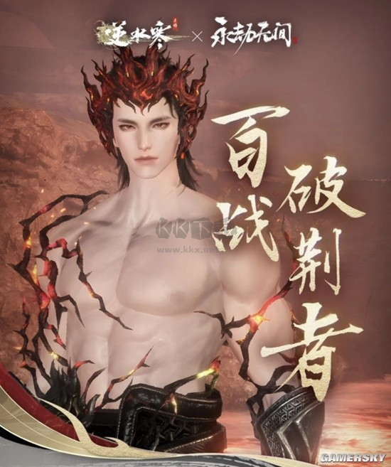 男款時(shí)裝則選取了岳山在戰(zhàn)場披荊斬棘,化身修羅的勇武形象。胸口虬曲猙獰的傷疤無需抹去,是鐵血戰(zhàn)役的勝利勛章。劍拔弩張的刺青之間凝聚熊熊烈焰,熾熱之意連荊棘也難以阻隔。腰間之獸目光灼灼,獠牙尖利,令敵人視之震顫,想必這兩個(gè)皮膚的加入,更能燃起《逆水寒》手游玩家在游戲中的斗志。