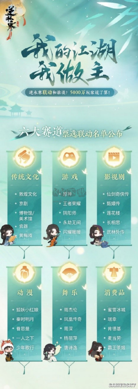 此次聯(lián)動(dòng)的起因要追溯到一個(gè)多月以前,《逆水寒》手游官方發(fā)起了一次玩家投票,此次投票旨在讓玩家們選出《逆水寒》手游的首次聯(lián)動(dòng)對象。投票活動(dòng)分為六大賽道,每個(gè)賽道的投票活動(dòng)都吸引了大量玩家關(guān)注,活動(dòng)影響力空前,甚至邀約《王者榮耀》聯(lián)動(dòng)的消息也沖上熱搜,并引得各大媒體爭相報(bào)道。