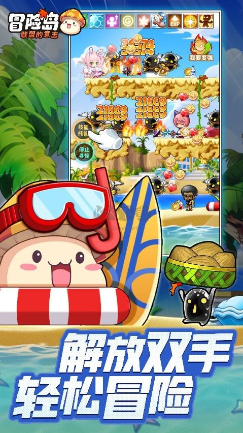 射手村、明珠港、天空之城...在這個(gè)熟悉的冒險(xiǎn)島世界,全新的旅途即將開啟!作為冒險(xiǎn)島首款正版豎屏游戲,《冒險(xiǎn)島:聯(lián)盟的意志》將貫徹輕松好玩的宗旨。免費(fèi)掛機(jī)+自動(dòng)戰(zhàn)斗的機(jī)制讓冒險(xiǎn)家們隨玩隨停,無論是上班途中亦或是閑暇休憩時(shí)都能單手輕松游玩;更簡化的裝備體系+100%免費(fèi)的離線掛機(jī)收益,養(yǎng)成升級(jí)根本停不下來,每時(shí)每刻都在變強(qiáng)!