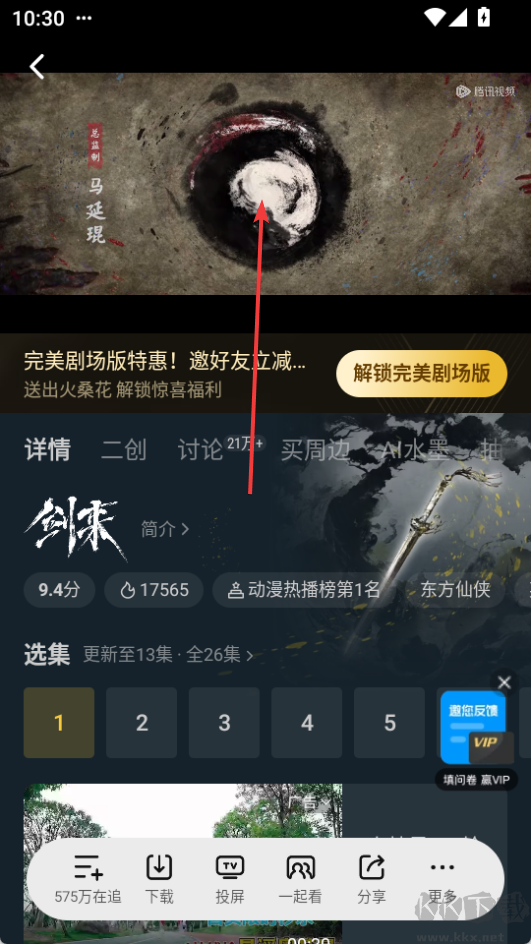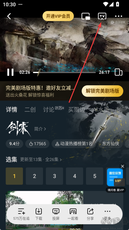 1、打開(kāi)騰訊視頻app,播放想要投屏的視頻