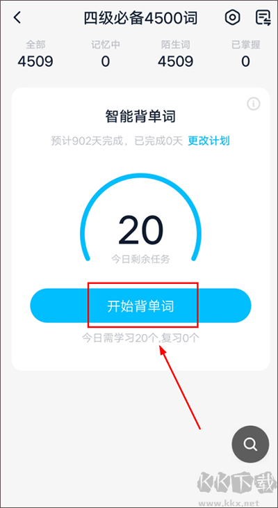 4、設(shè)定完成后,點(diǎn)擊【開始背單詞】即可開啟自己的每日學(xué)習(xí)計(jì)劃