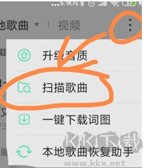2、點(diǎn)擊右上角的三個(gè)點(diǎn),然后選擇“掃描歌曲”選項(xiàng);