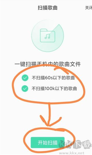 3、設(shè)置過濾選項(xiàng),然后點(diǎn)擊“掃描歌曲”;