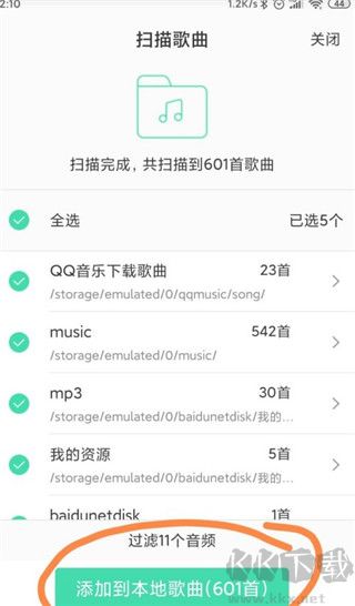 4、等待掃描完成后,點(diǎn)擊“添加到本地歌曲”即可完成導(dǎo)入。