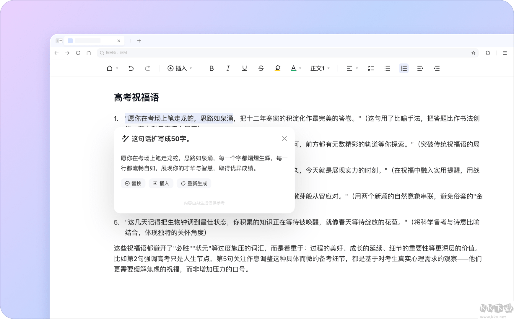 3. 輸入“/”呼出AI幫寫,AI將為你量身打造個性化的文章。
