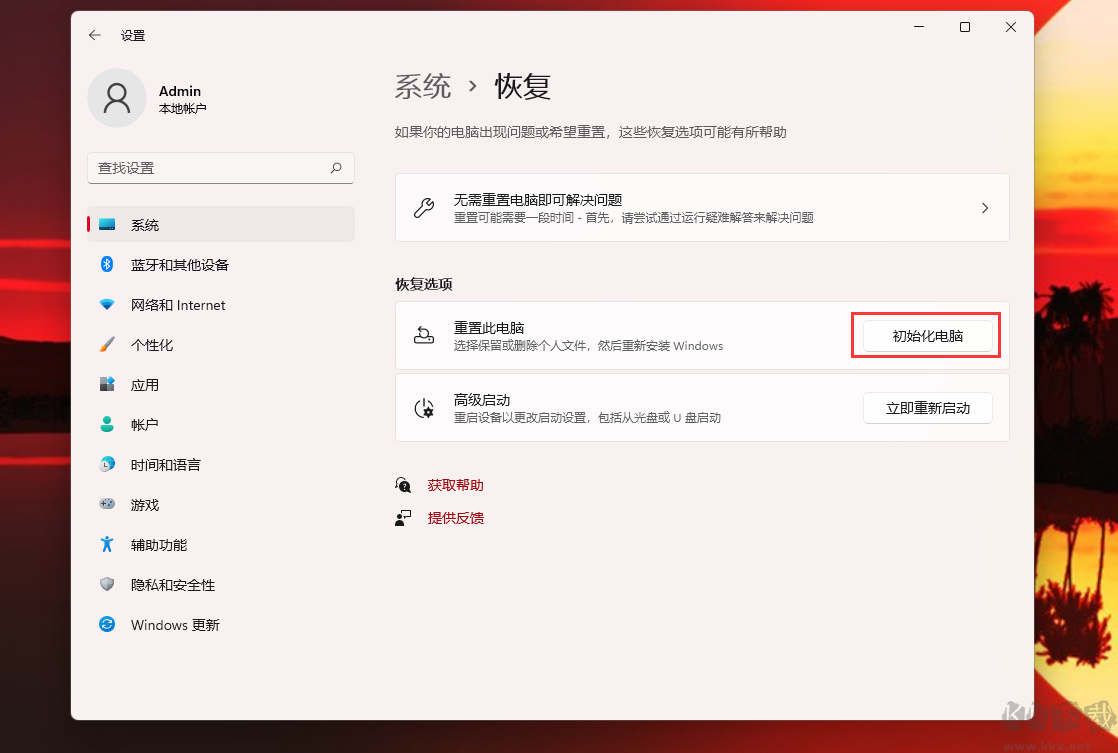 3、然后再選擇“初始化電腦”。