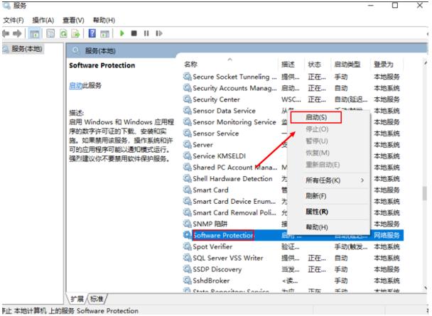 3丶右鍵Software Protection服務,點擊啟動按鈕,最后重啟office 2016即可。