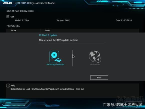 這里需要特別說明,從Internet更新的話對于網(wǎng)絡要求非常高,若是中途有中斷的話就會導致BIOS讀取、下載、更新的失敗,且更新BIOS風險性極大,為保證主板順利更新BIOS,建議使用第一種方式來更新BIOS。