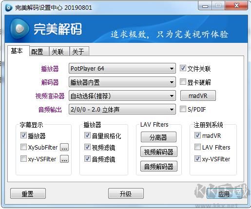 完美解碼播放器是一款集成完美解碼包+高清播放器的萬能播放器,幾乎可以滿足大家一切高清影視需求,但是在安裝之后開始是需要設置的,可能很多朋友不知道完美解碼播放器怎么設置好。下面小編就簡單的和大家介紹一下。完美解碼設置:1、播放器設置完......