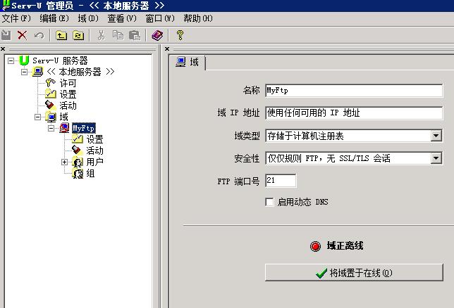 在Win2008 server服務(wù)器系統(tǒng)中安裝了Serv-U,發(fā)現(xiàn)使用上傳軟件無法連接,查看Serv-U服務(wù)端發(fā)現(xiàn)顯示域正離線,這樣的話上傳軟件是無法連接到服務(wù)器的,這是怎么回事呢?域正離線原因分析:出現(xiàn)這樣原因,如果點擊將域置于在線還是無效的話,大多是......