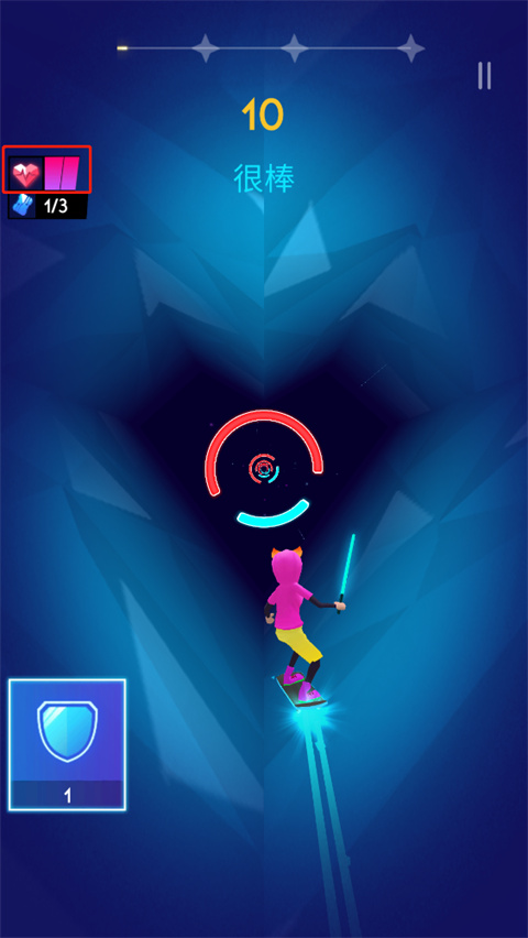6、左上方的是血條,失誤一次會(huì)消耗一格血條,血條見底游戲就會(huì)結(jié)束;
