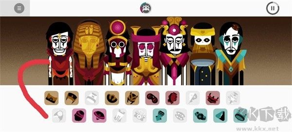 支持拖拽6種埃及角色生成音軌,可導(dǎo)出作品至社區(qū)參與投票排行。