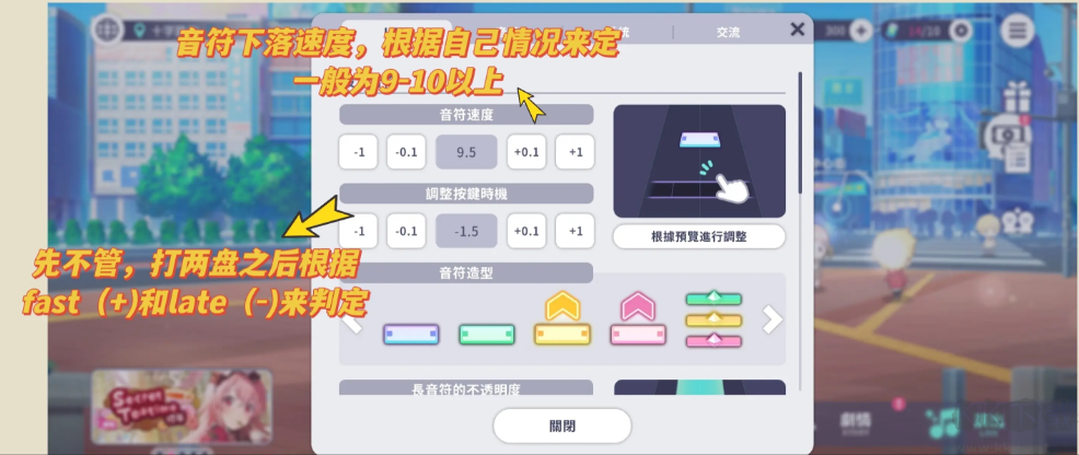 3.音符造型,不透明度,效果音,演出設(shè)定都根據(jù)自己喜好就行,局內(nèi)不太影響打歌。