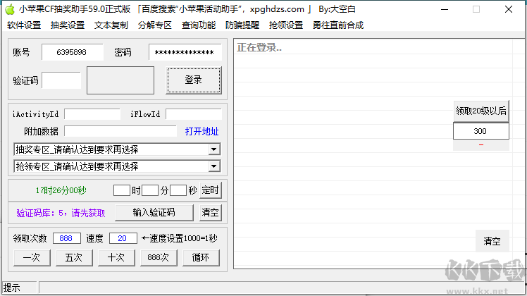 cf活動(dòng)助手是針對(duì)游戲《穿越火線(CF)》制作的一款實(shí)用工具,軟件可以及時(shí)更新最新的CF活動(dòng),幫助玩家完成自動(dòng)簽到等活動(dòng),一鍵將CF活動(dòng)中贈(zèng)送的各種道具領(lǐng)取到自己的游戲倉(cāng)庫(kù)之中。讓玩家再也不需要擔(dān)心錯(cuò)過任何CF活動(dòng),可以輕松獲取大量免費(fèi)的CF活動(dòng)道具。KK下載站為您提供cf活動(dòng)助手大全,里面整合了目前各種一鍵領(lǐng)取cf活動(dòng)助手工具,有需要的朋友可以下載哦!
